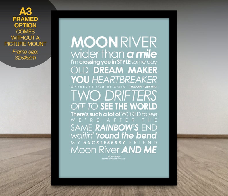 Moon River LYRICS print. Breakfast at Tiffanys Audrey Hepburn Etsy